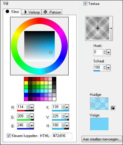 verloop en een vinkje bij textuur.